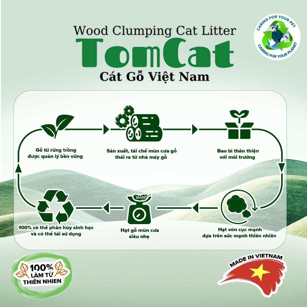 - Cát gỗ vón Tomcat có thể xả vào bồn cầu với lượng nhỏ mỗi lần, do khả năng phân hủy nhanh.