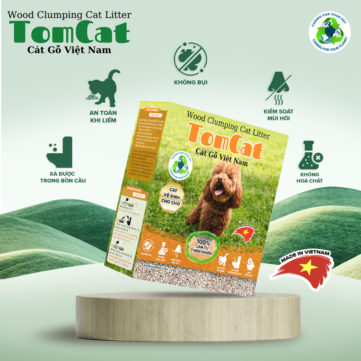 🌿 Đặc điểm nổi bật của cát gỗ vệ sinh cho chó Tomcat: